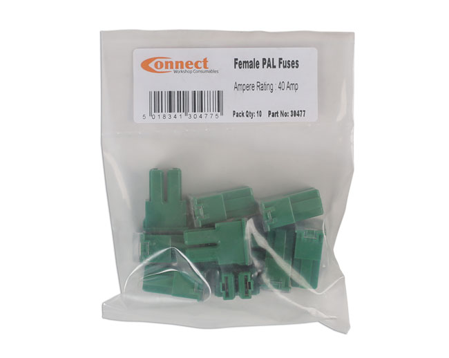 A pack of 40 amp female PAL fuses, suitable for automotive use.