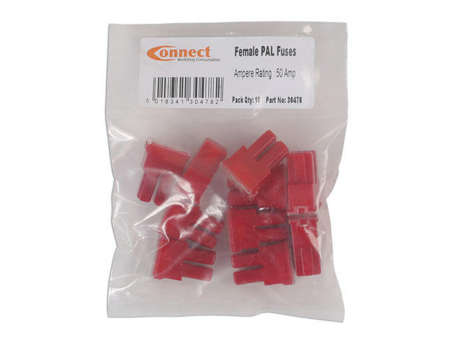 A pack of 50 amp female PAL fuses, suitable for automotive use.
