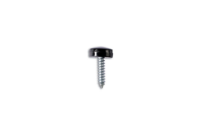 A pack of 100 self tapping screws with black flip top cap for securing number plates to front & rear of cars.
