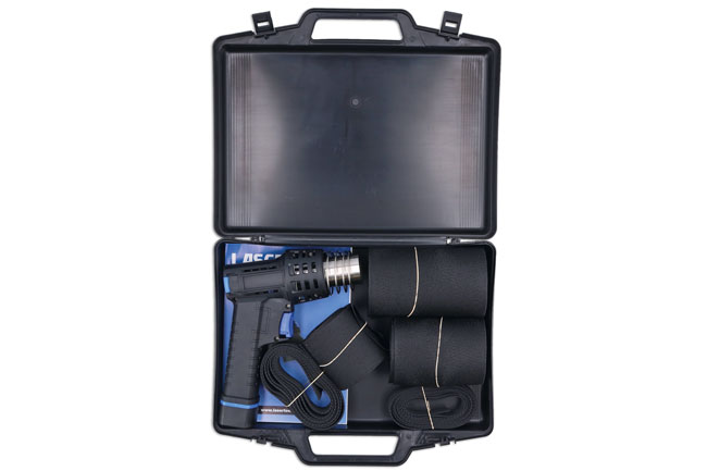 - Also features a Butane powered hot air gun, Laser Part No. 8815, all supplied in a plastic storage case with carrying handle.