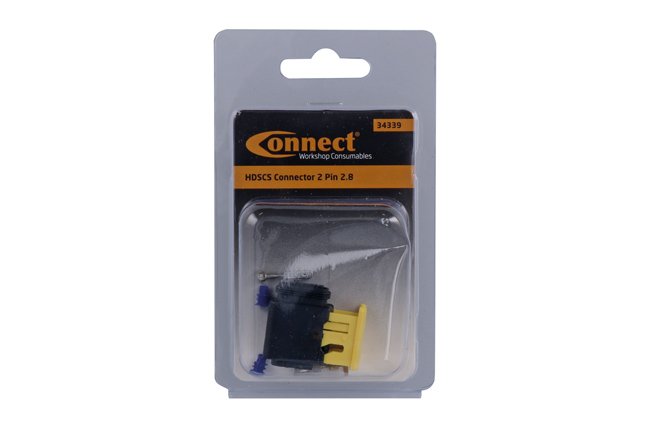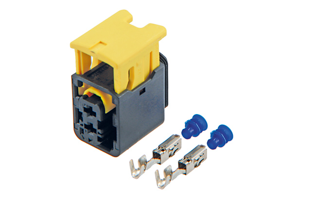 - Contains: 1x 2-pin connector housing, 2x 2.8 terminals & 2x weather seals (blue).