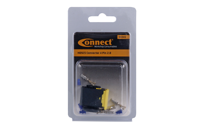 - Contains: 1x 4-pin connector housing, 4x 2.8 terminals & 4x weather seals (blue).
