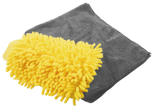 Een 4-delige professionele schoonmaakset voor auto’s, met een washandschoen van microvezels, een microvezeldoek, een metalen wielborstel en een microvezelspons. Geschikt voor gebruik in de werkplaats, bodyshop of thuis. De washandschoen is gemaakt van een schurende mesh-stof aan een kant voor vastzittend vuil en absorberende microvezels aan de andere kant om vuil en viezigheid op te nemen en met gemak van het voertuig te verwijderen. De microvezeldoek absorbeert water en laat geen strepen achter. De metalen borstel heft een flexibele kop en stevige borstelharen om actief vuil, viezigheid en remstof van het wieloppervlak af te nemen zonder de afwerking te beschadigen. De microvezelspons houdt water vast en heeft een band voor betere grip en is afgewerkt met zacht, krasvrij materiaal.