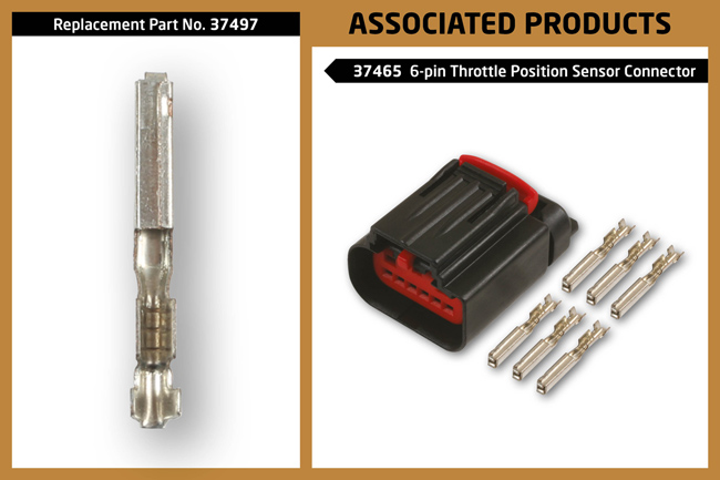 - Non-insulated female terminals used in: 6-pin throttle position sesnsor connectors (equivalent to OEM 1-1419168-1), Part No. 37465.
