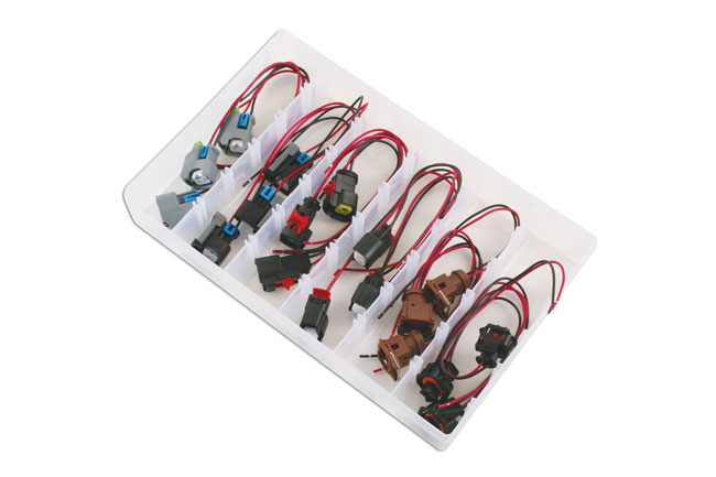 Comprehensive range of electrical sensor connectors to Bosch injectors. Three of each type of connector supplied.