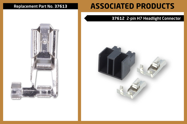 - Non-insulated female terminals to suit: 2-pin H7 headlight connectors, Part No. 37612.