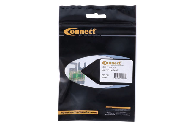 A pack of 40 amp open ended midi fuses. The opened ended design enables fuses to be easily changed without removing the fixing bolts, saving time.